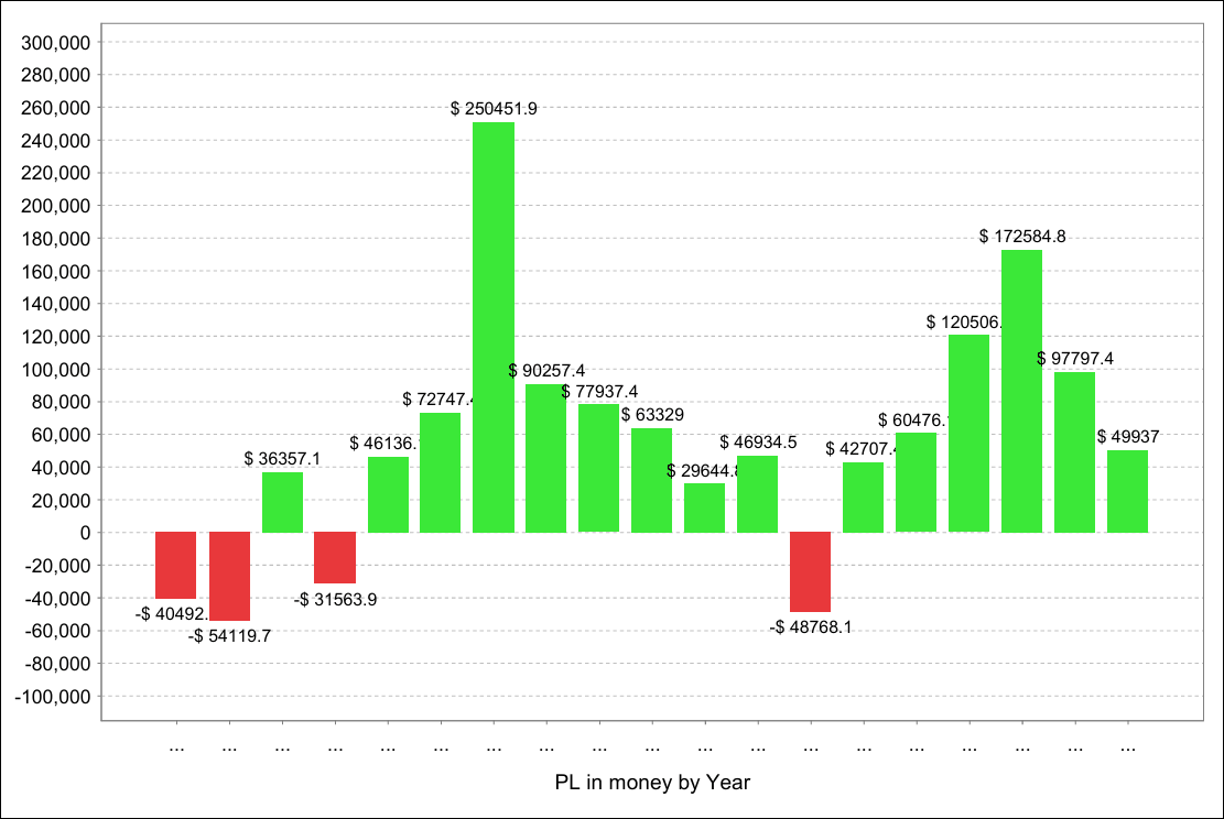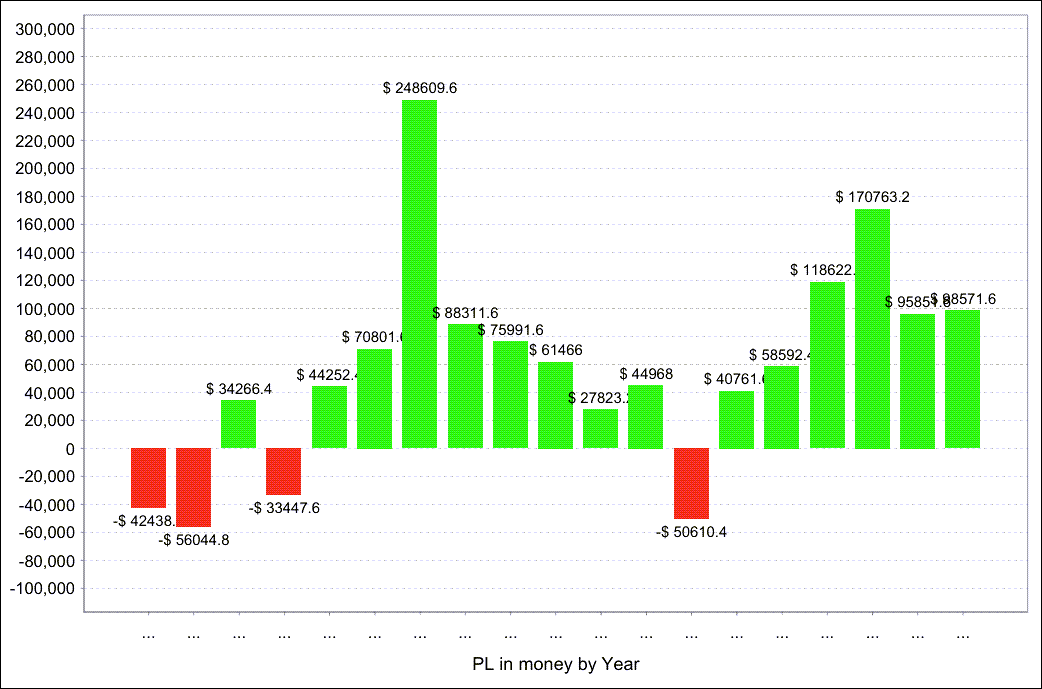年次の成績を見ると、前半は少しマイナスの年がありますが、ほとんどがプラスです。
