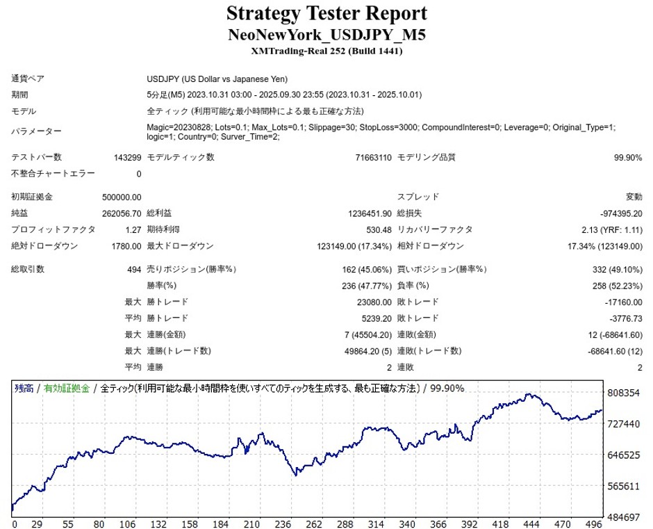| 初期証拠金 | 500,000円 | 勝率 | 47.77% |
