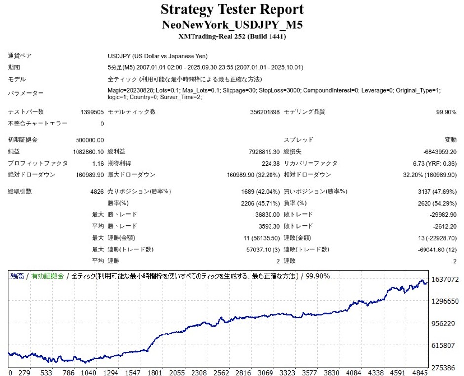 NeoNewYorkはUSDJPYのデイトレードEAですが、成績はどうなのでしょうか。