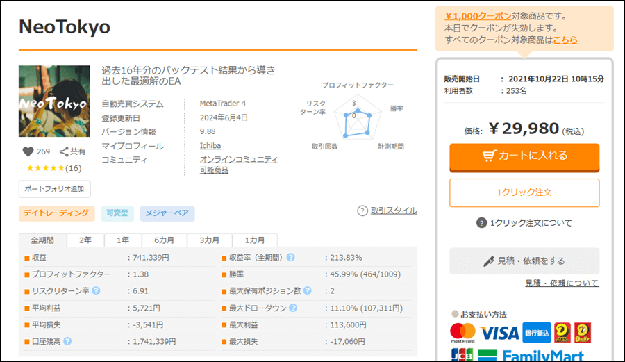 NeoTokyoはデイトレードEAのようですが、成績はどうなのでしょうか。
