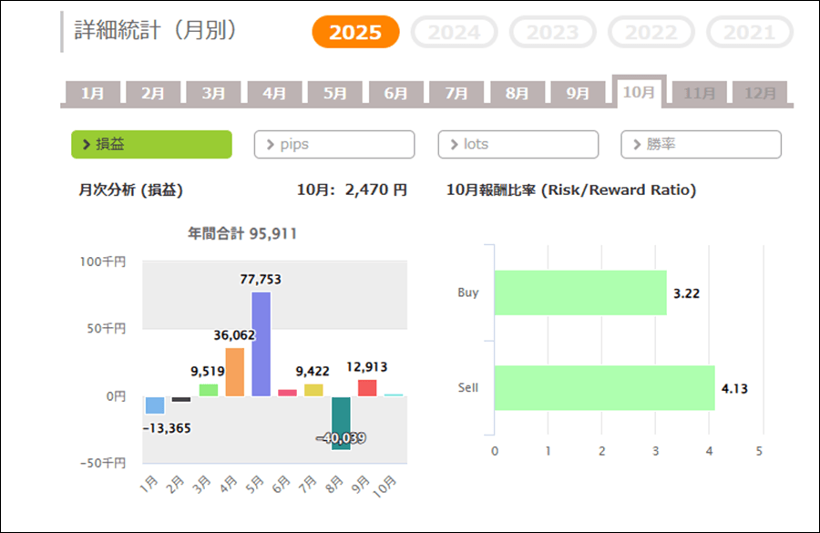 月次分析を見ると、2025年は今のところトータルでプラスです。