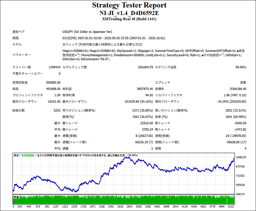 | 初期証拠金 | 500,000円 | 勝率 | 30.02% |
