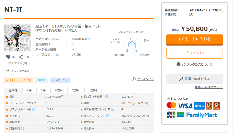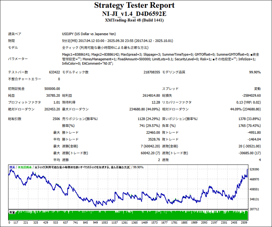 NI-JIはUSDJPY専用のEAですが、成績はどうなのでしょうか。