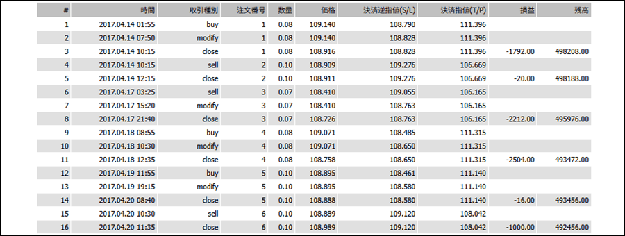 | 初期証拠金 | 500,000円 | 勝率 | 29.57% |