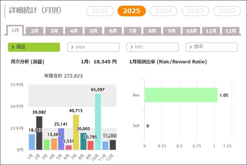 | 平均利益 | 647円 | 最大利益 | 18,362円 |