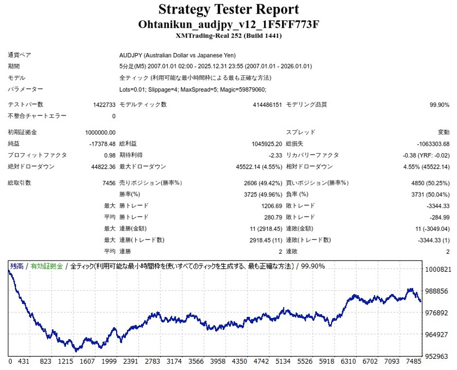 | 初期証拠金 | 1,000,000円 | 勝率 | 49.96% |