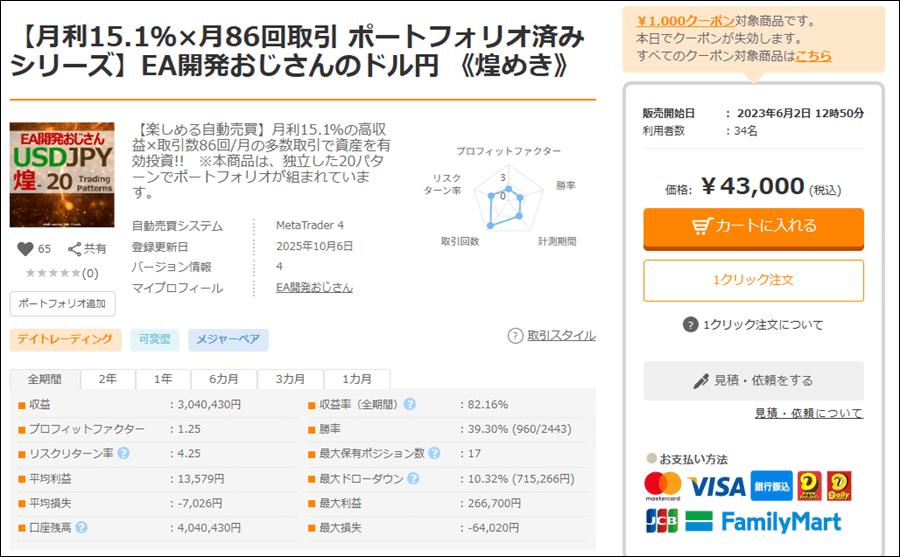 EA開発おじさんさんはEA開発おじさんのドル円 《煌めき》のほかにもEAを出品されています。