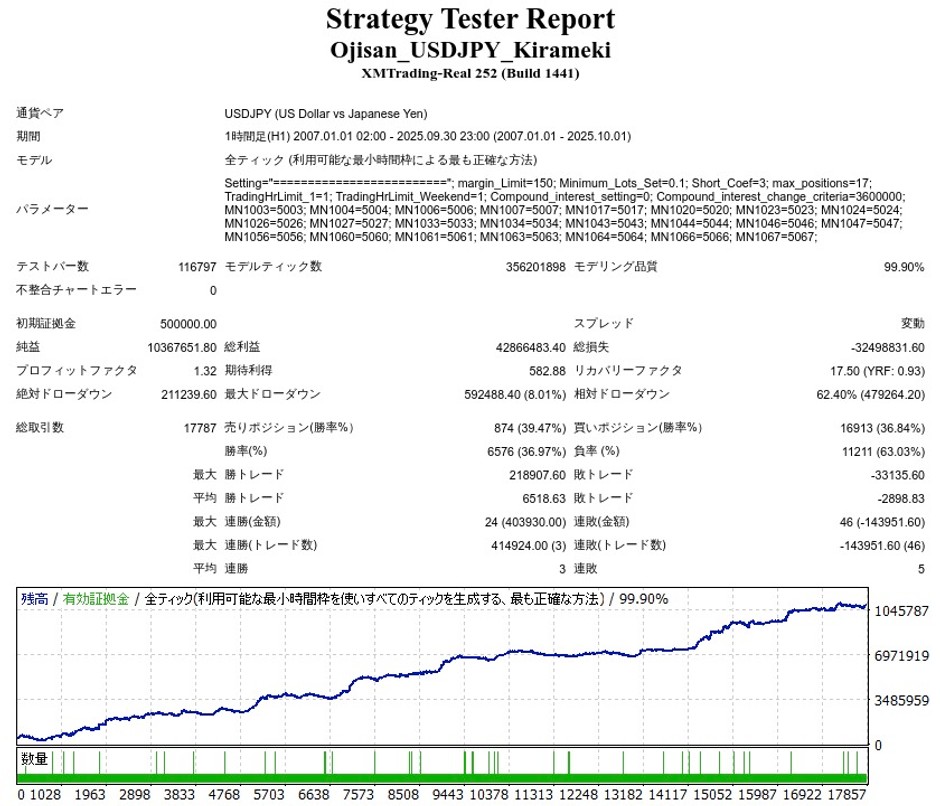 GogoJungleのEA開発おじさんのドル円 《煌めき》のバックテストをしてきました。