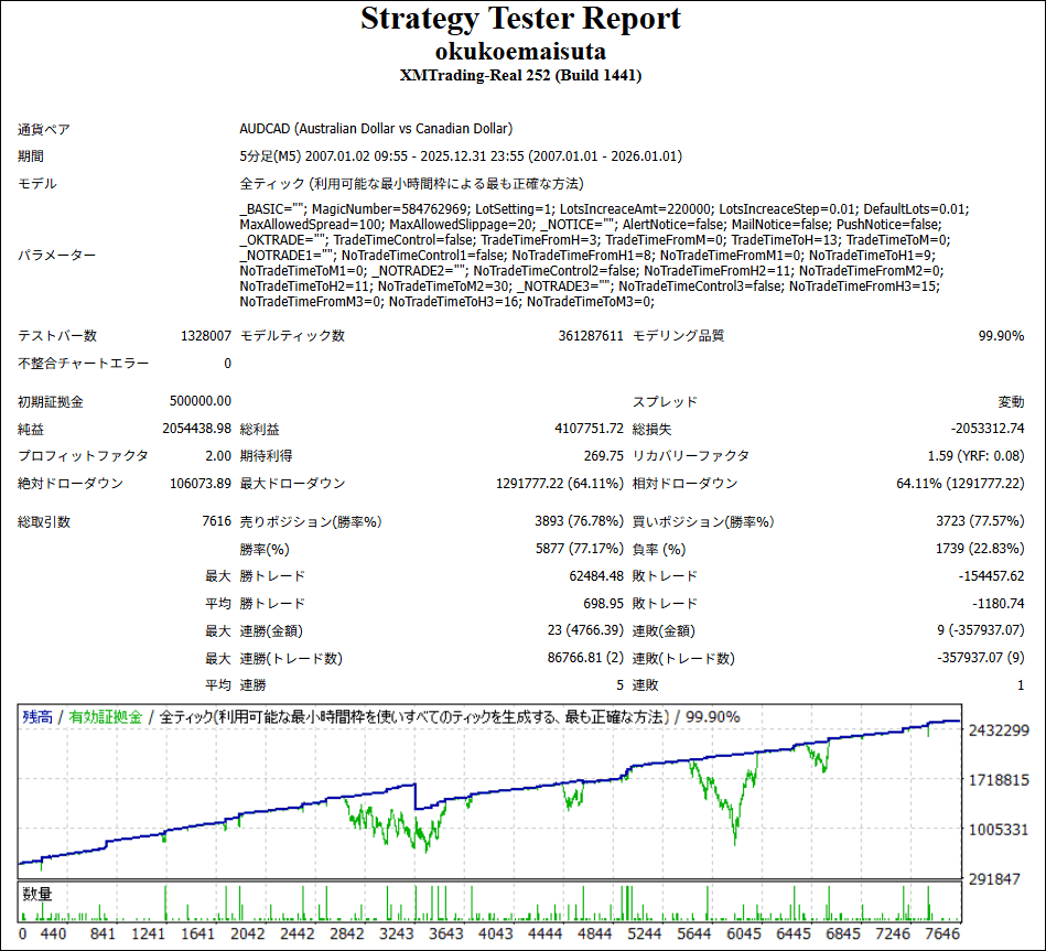 | 初期証拠金 | 500,000円 | 勝率 | 76.52% |