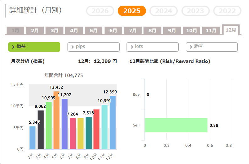 2022年~2025年の月間成績をまとめると合計で+2.9万円の結果となりました。