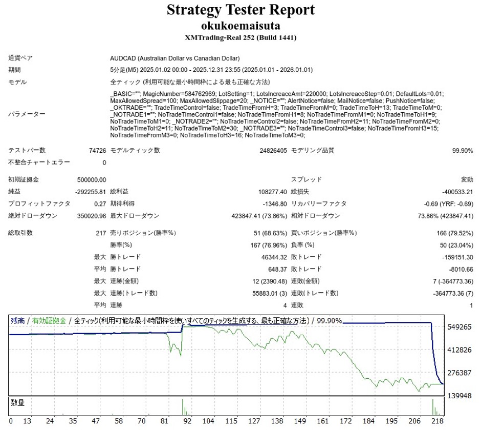 | 最大ドローダウン | 423,847円(73.86%) | リスクリターン率 | -0.69 |