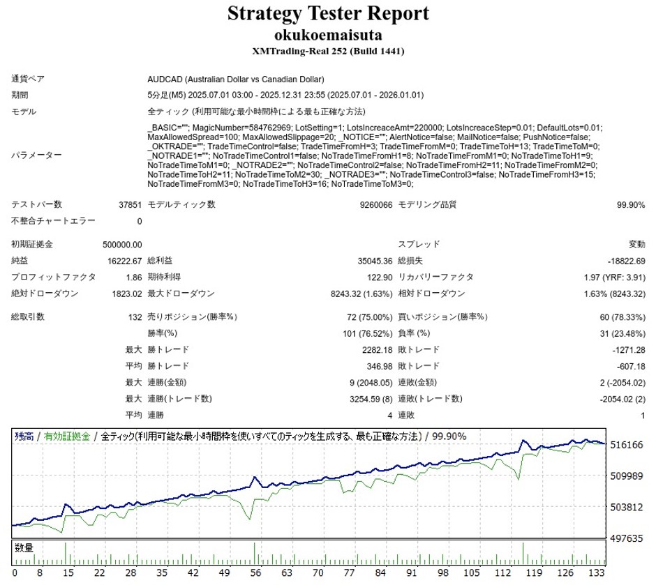 | 初期証拠金 | 500,000円 | 勝率 | 75.00% |