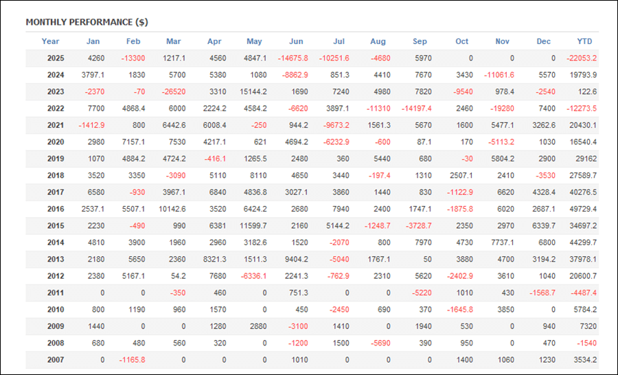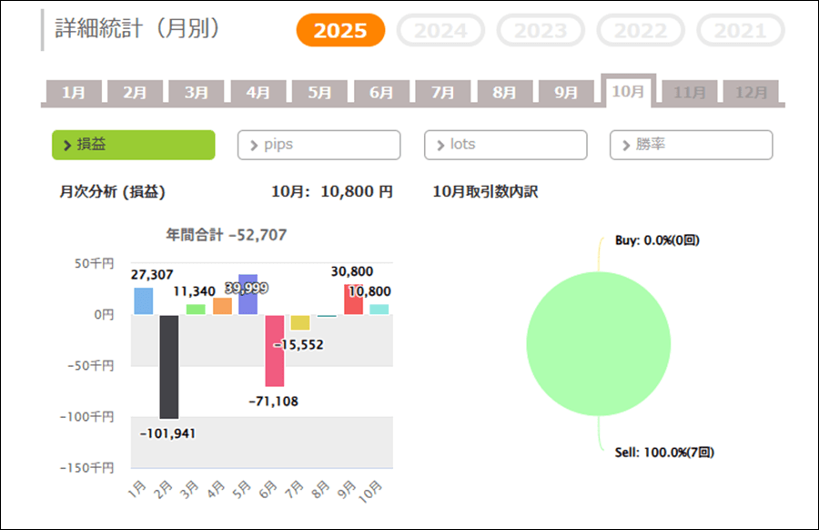 月次分析を見ると、2025年はトータルでマイナスになっています。
