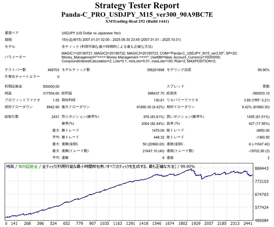 Panda-C_PRO_USDJPY_M15は高スプレッド耐性のあるEAのようですが、成績はどうなのでしょうか。