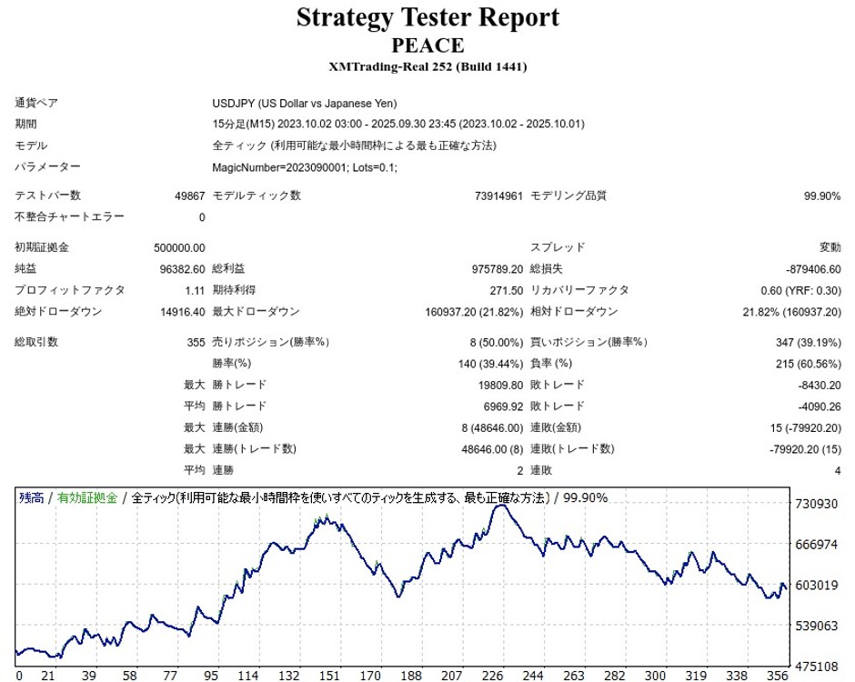 PEACE(EABANK)のリリース後のバックテスト結果(≒フォワード結果)は以下のようになりました。