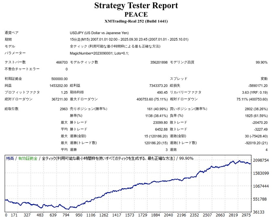 | 初期証拠金 | 500,000円 | 勝率 | 38.41% |