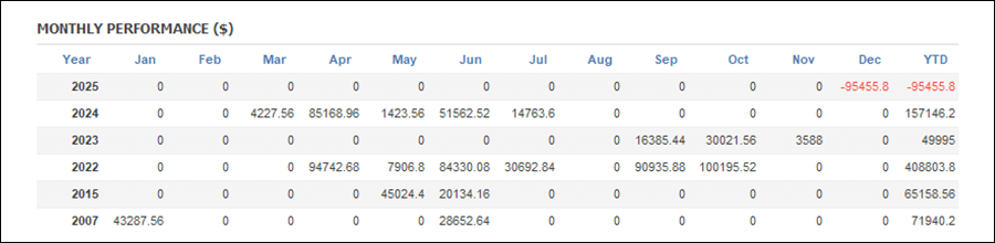 月次分析を見ると、取引のない月もありますが、取引した場合はプラス成績となっています。2024年7月以降取引が止まっています。