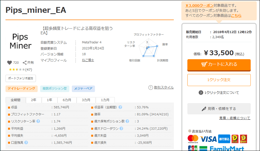 Pips_miner_EAはGBPUSD専用の高頻度トレードEAですが成績はどうなのでしょうか。