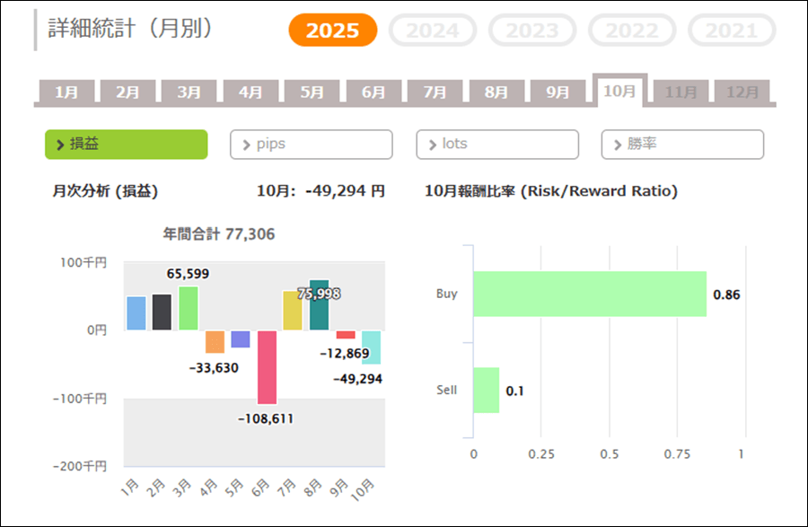 月次分析を見ると、2025年は今のところトータルでプラスです。