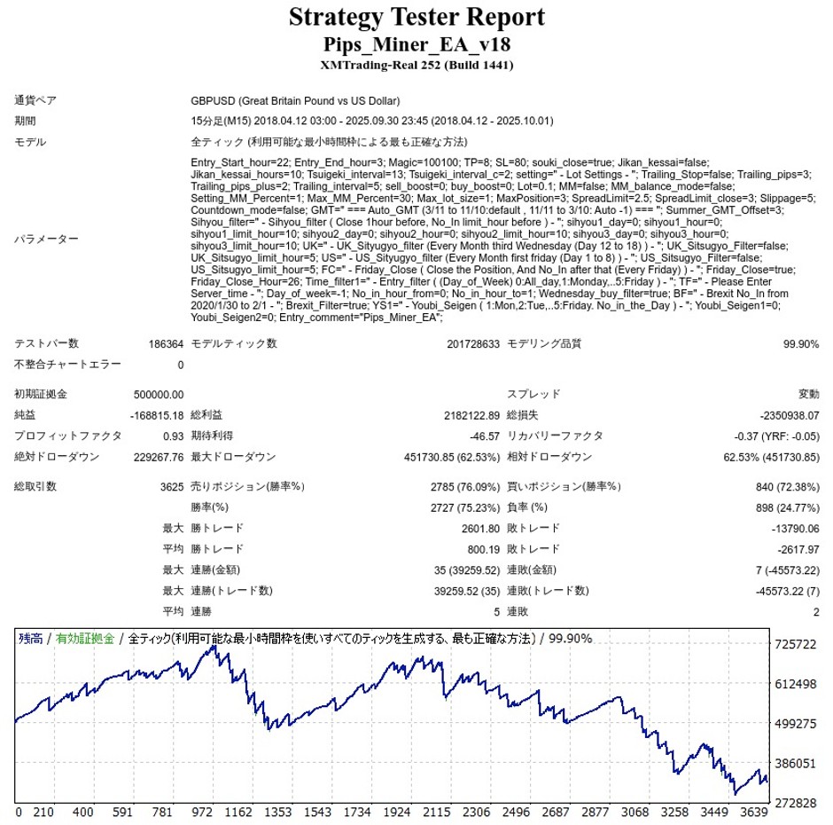 GogoJungleのPips_miner_EAのバックテストをしてきました。