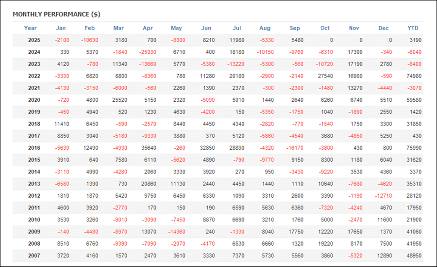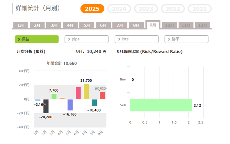 月次分析を見ると、2025年は今のところトータルでマイナス。2024年はマイナスの月が多くなっています。