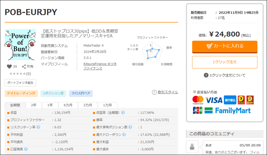 では、PowerOfBun-EURJPYを詳しく見て行きましょう。