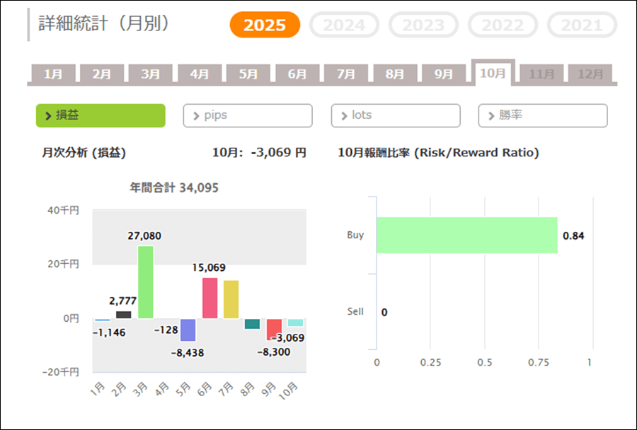 | 平均利益 | 2,170円 | 最大利益 | 21,270円 |