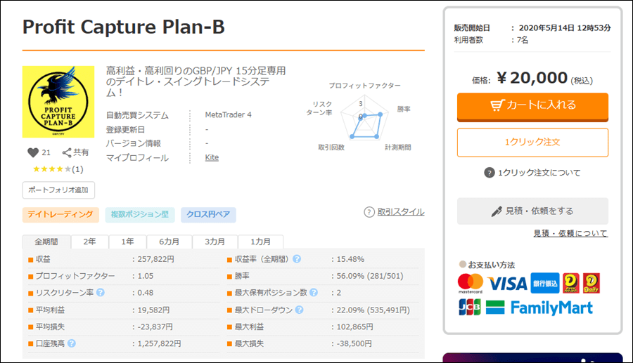 Profit Capture Plan-BはGBPJPY専用のデイトレEAですが、成績はどうなのでしょうか。
