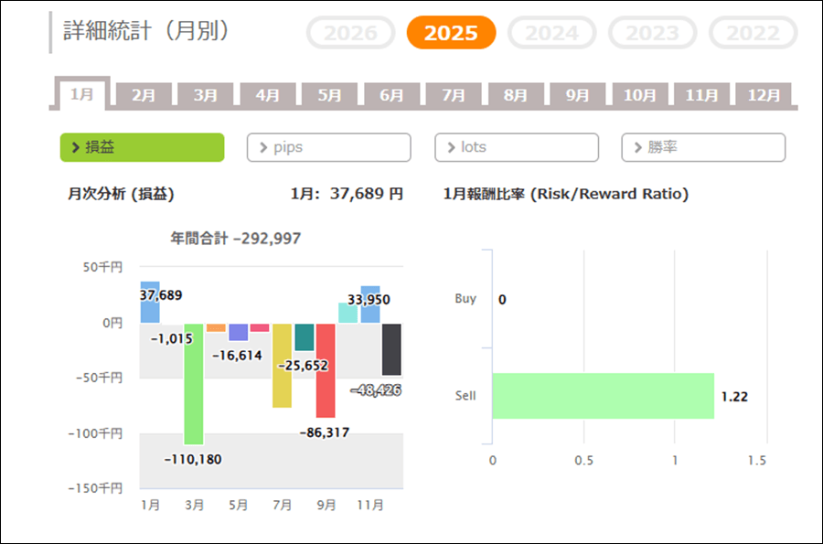月次分析を見ると、勝ったり負けたりの成績になっています。