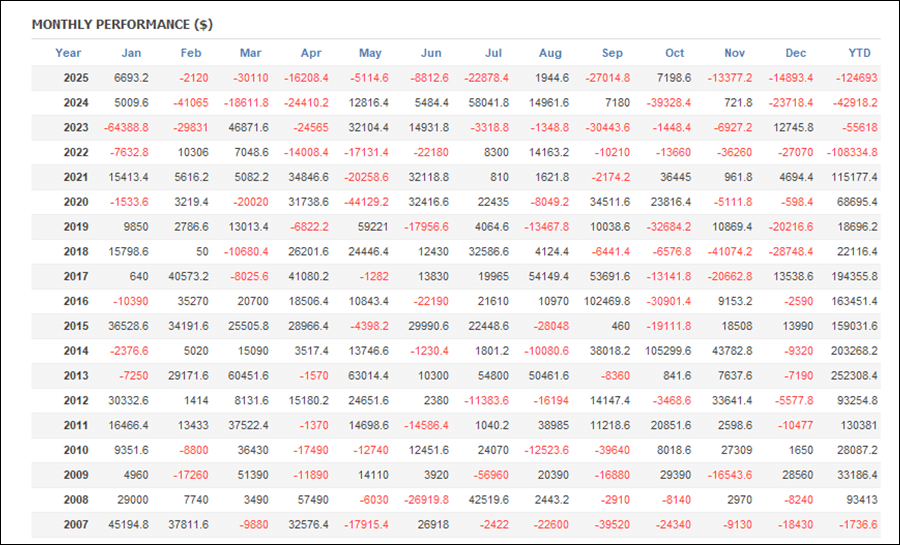 2022年、2023年、2024年、2025年はマイナス成績と直近で成績が落ちています。