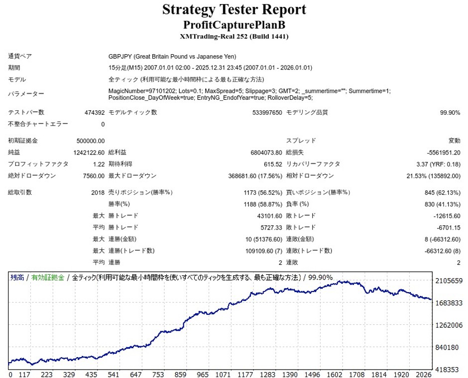 Profit Capture Plan-Bは、GBPJPY専用のデイトレードEAです。