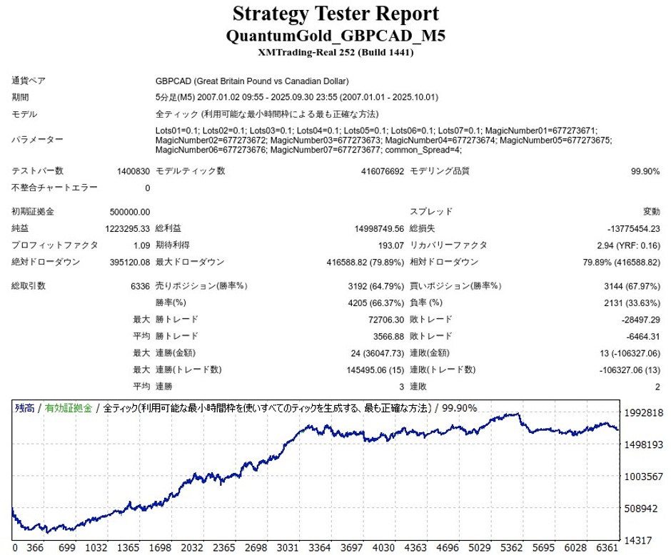 QuantumGoldはGBPCAD専用で、複数のロジックで動くデイトレードEAとなっています。