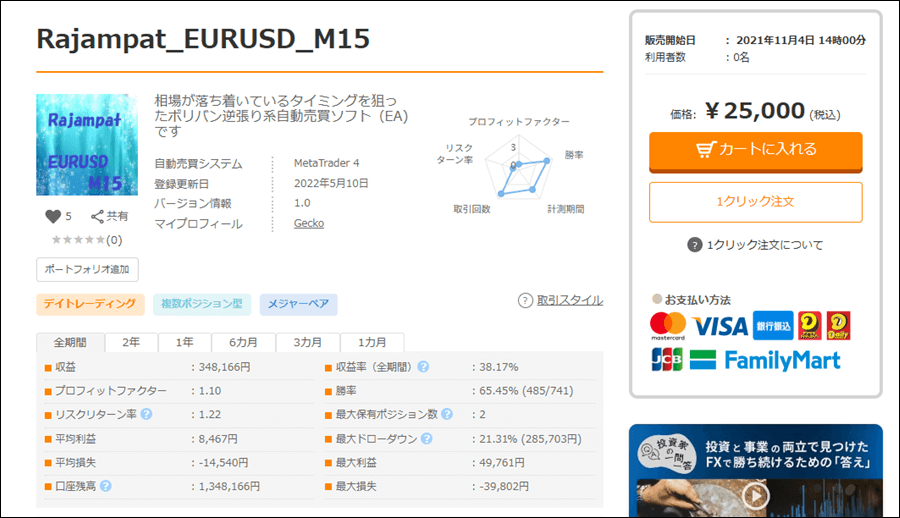 Rajampat_EURUSD_M15はスイングトレードEAですが、成績はどうなのでしょうか。