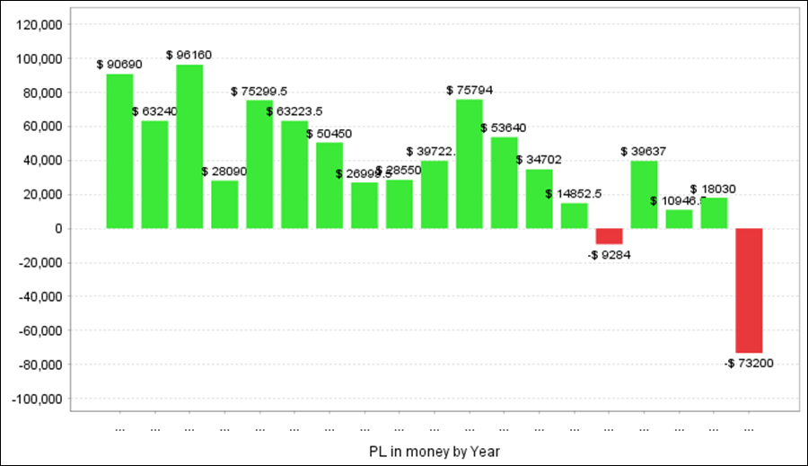 AUDJPYは過去18年で+81.8万円の収益で、一番成績が良かったです。