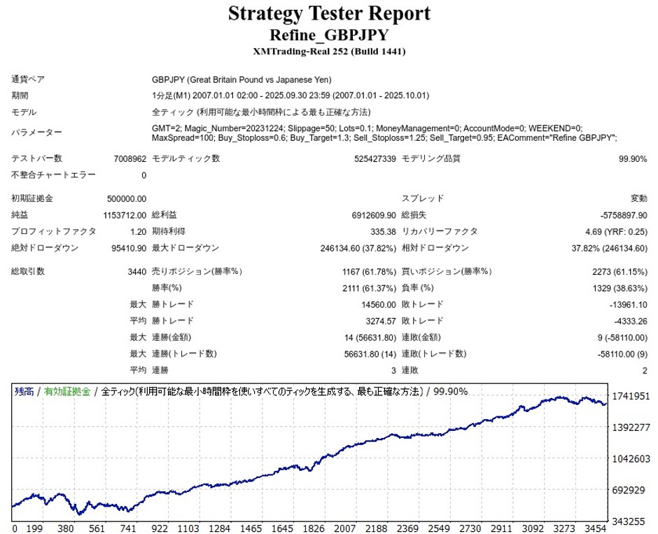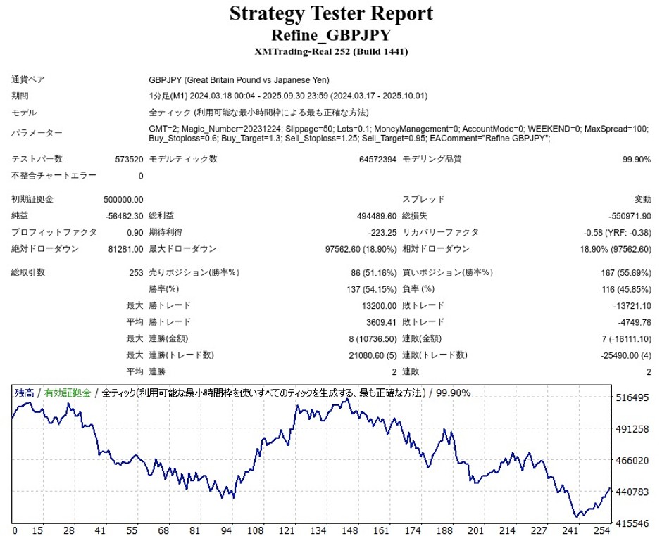 Refine GBPJPYのリリース後のバックテスト結果(≒フォワード結果)は以下のようになりました。