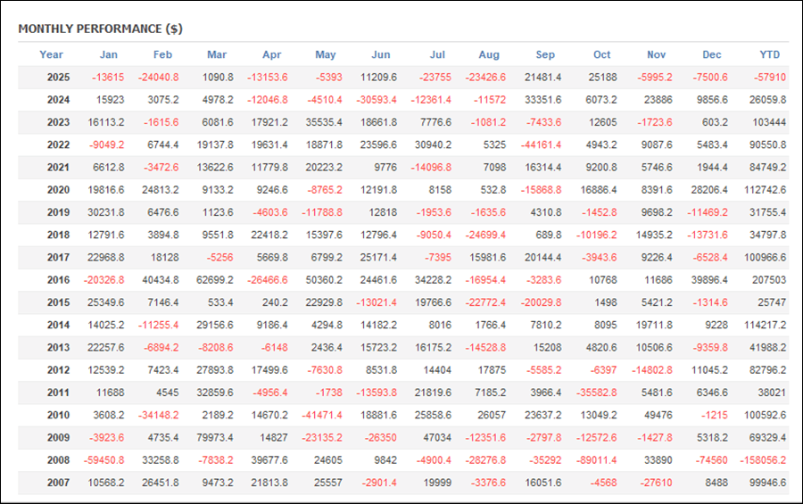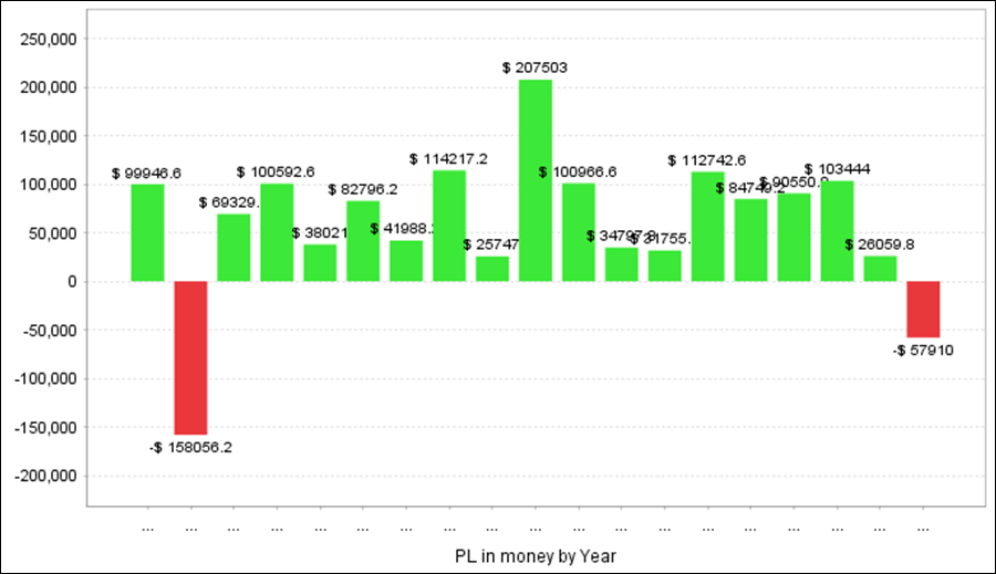 QuantAnalyzerを使った年間成績は、2008年、2025年以外はプラスです。