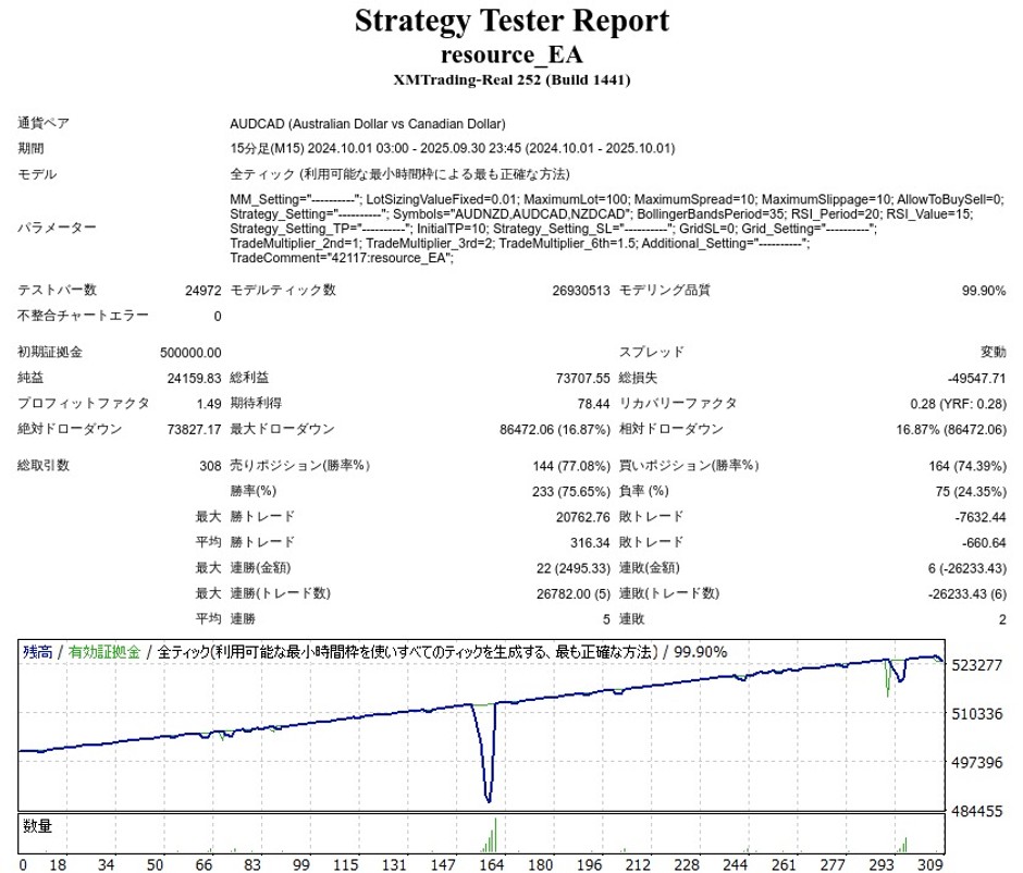 GogoJungleのresource EAのバックテストをしてきました。AUDCADは長期でもプラスでした。