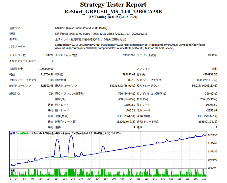 | 初期証拠金 | 1,000,000円 | 勝率 | 64.64% |