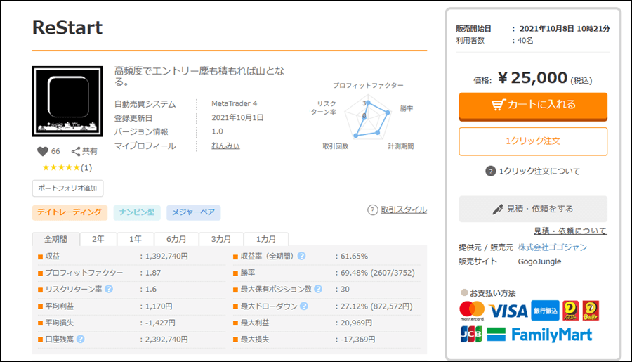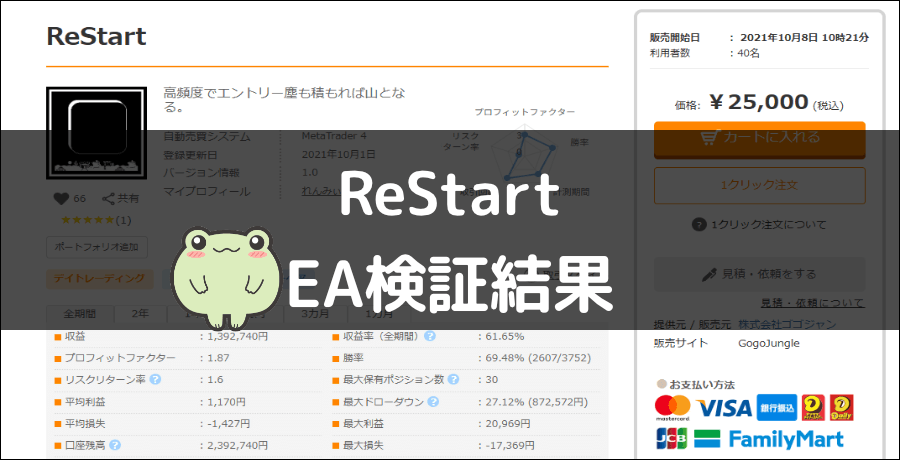 ReStartはナンピンタイプのEAですが、成績はどうなのでしょうか。