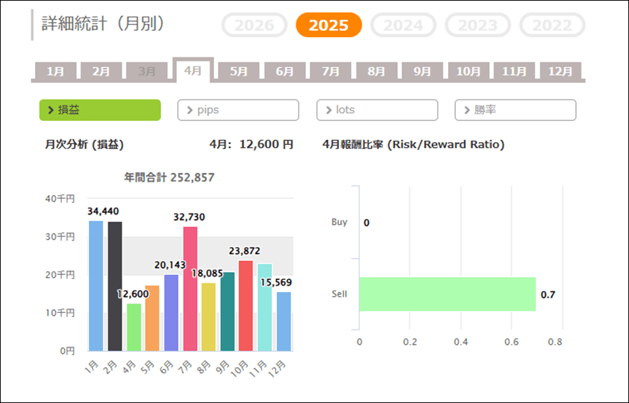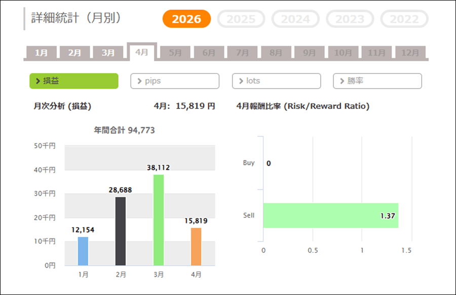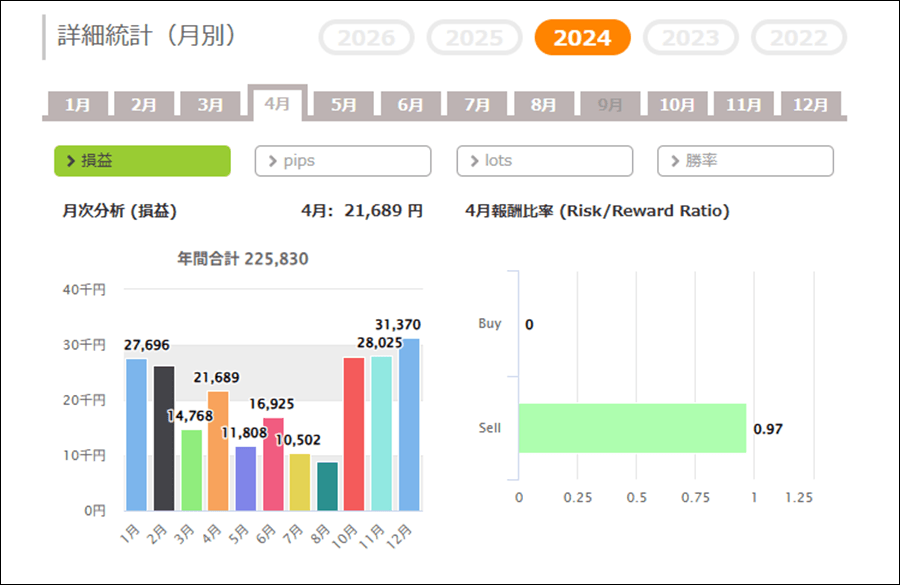 | 平均利益 | 974円 | 最大利益 | 7,454円 |
