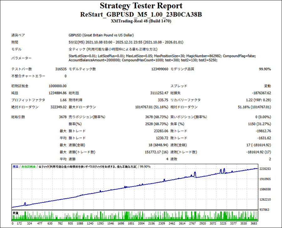 | 初期証拠金 | 1,000,000円 | 勝率 | 68.73% |