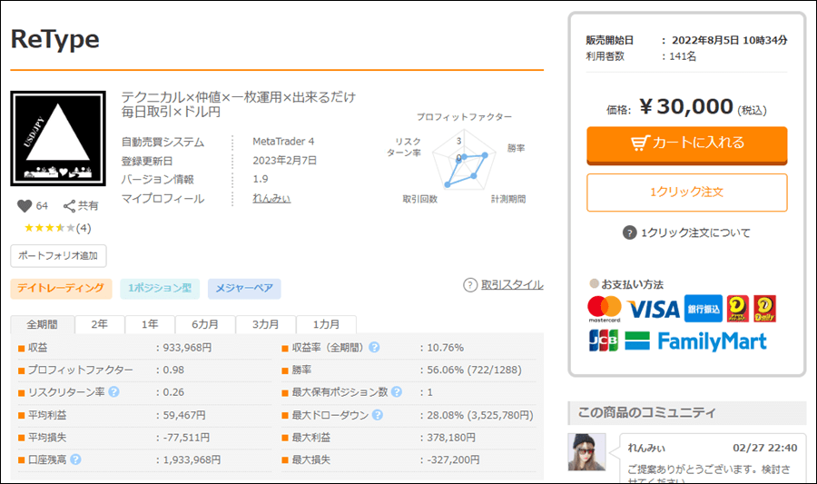 ReTypeの詳細を確認するテクニカル×仲値×一枚運用×出来るだけ毎日取引×ドル円 | GogoJungle