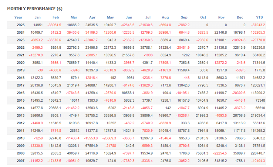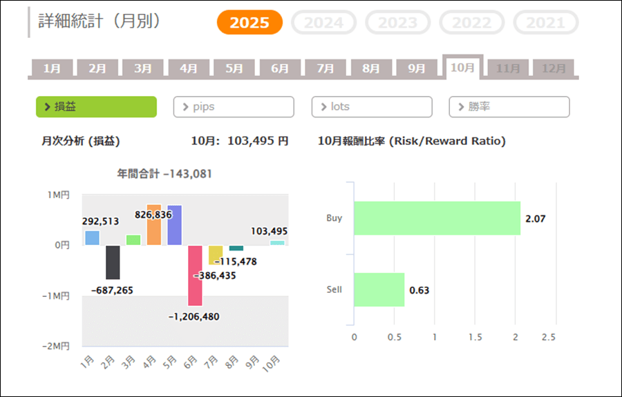 月次分析を見ると、2025年は今のところトータルでマイナスです。