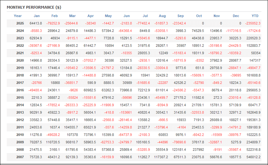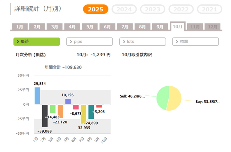 月次分析を見ると、2025年はマイナスが多く今のところトータルでマイナスです。
