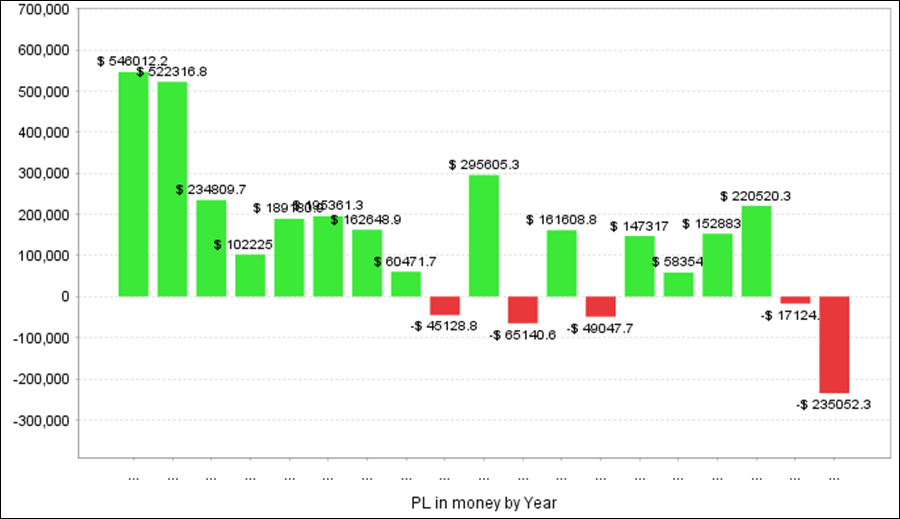 2015年、2017年、2019年、2024年、2025年がマイナスですが、プラスの年の利益率は高めです。