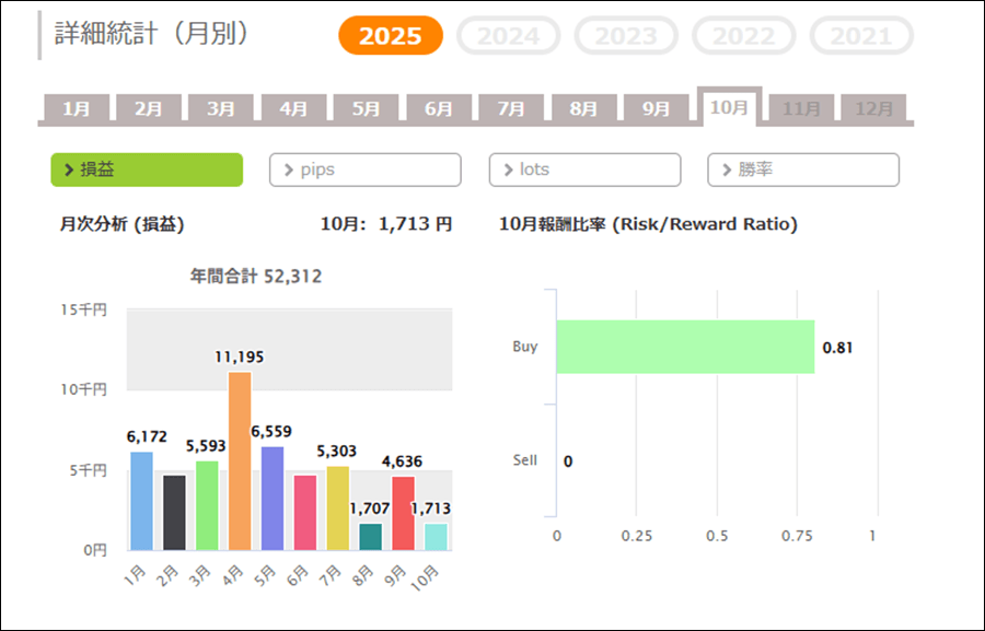 月次分析を見ると、ナンピン系ですので毎月利益を積み上げています。