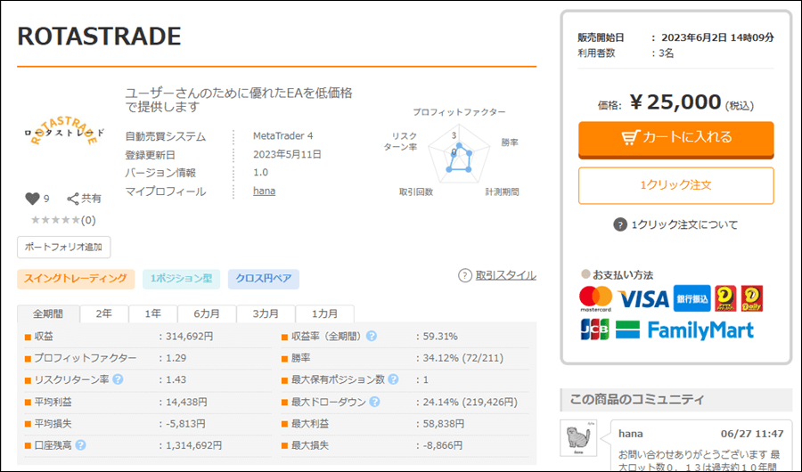 hanaさんはROTASTRADEのほかにもEAを出品されています。