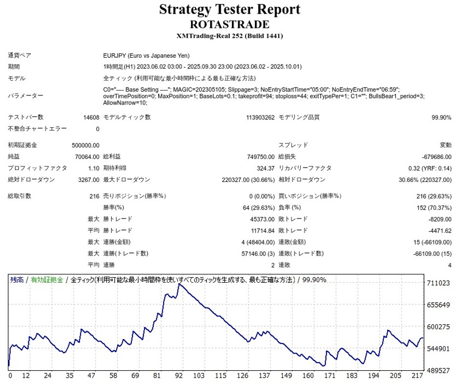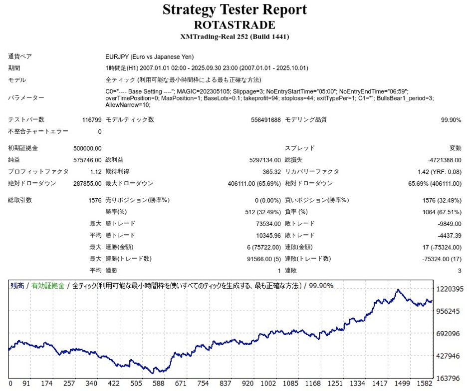 ROTASTRADEはEURJPYのスイングトレードEAですが、成績はどうなのでしょうか。