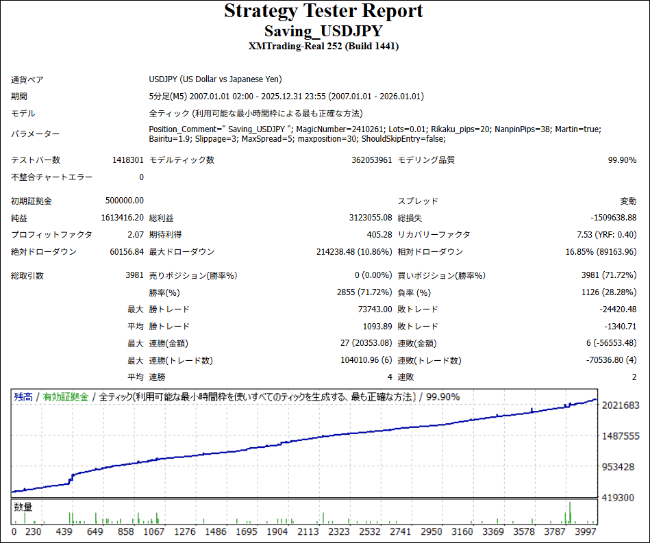 Saving_USDJPYはナンピンEAですが、成績はどうなのでしょうか。