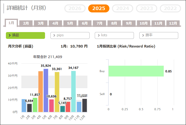 2022年~2025年の月間成績をまとめると合計で+26.9万円の結果となりました。